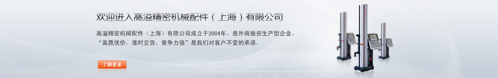 高溢精密機械配件(上海)有限公司成立于2004年,是外商獨資生產型企業。“高質優價,準時交貨,競爭力強”是我們對客戶不變的承諾。